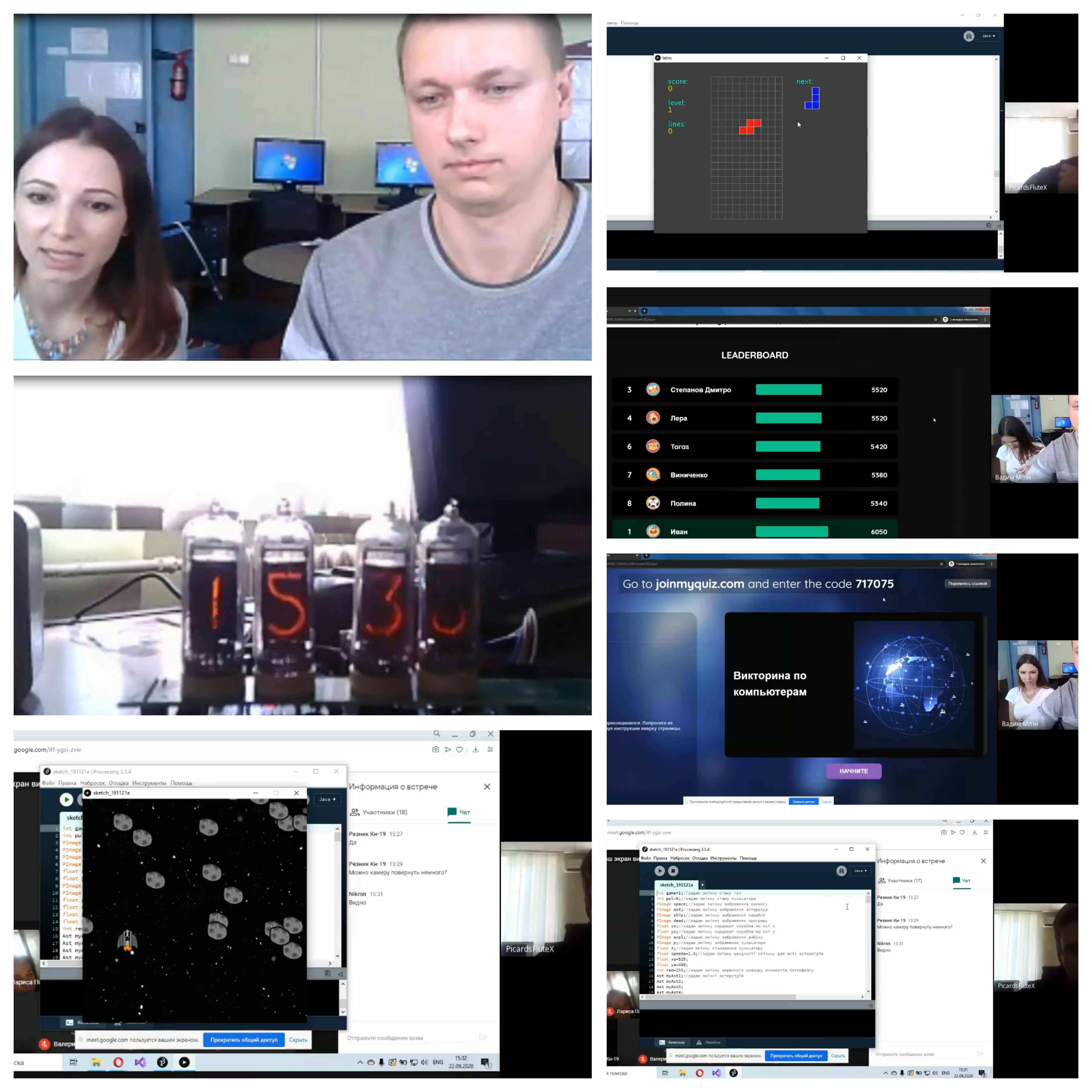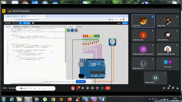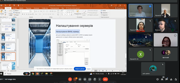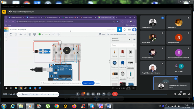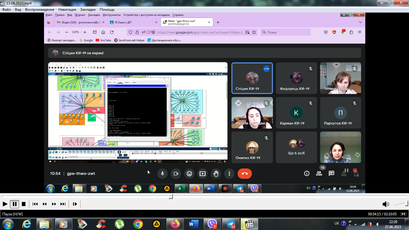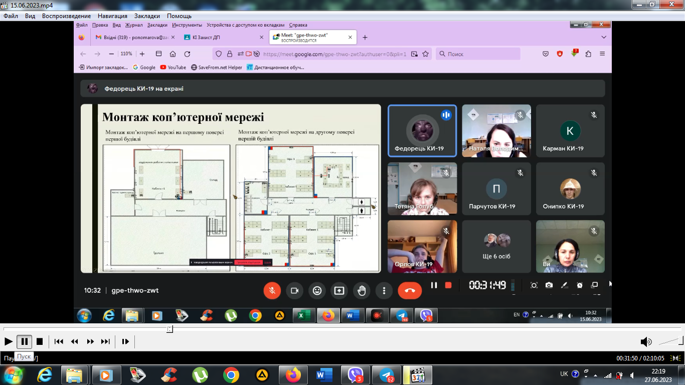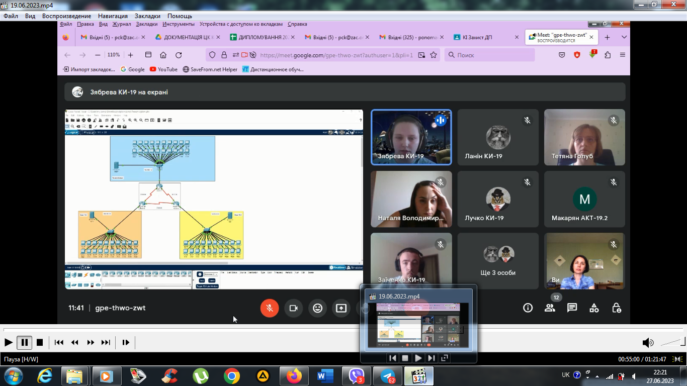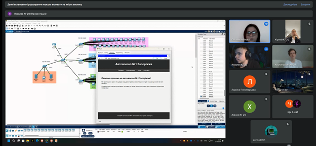 В лютому 2022 року студенти 4 курсу спеціальності 123 «Комп’ютерна інженерія», в онлайн-режимі за допомогою відеоконференцзв’язку з використанням Google Meet захистили курсові проєкти з дисципліни «Комп’ютерні мережі»