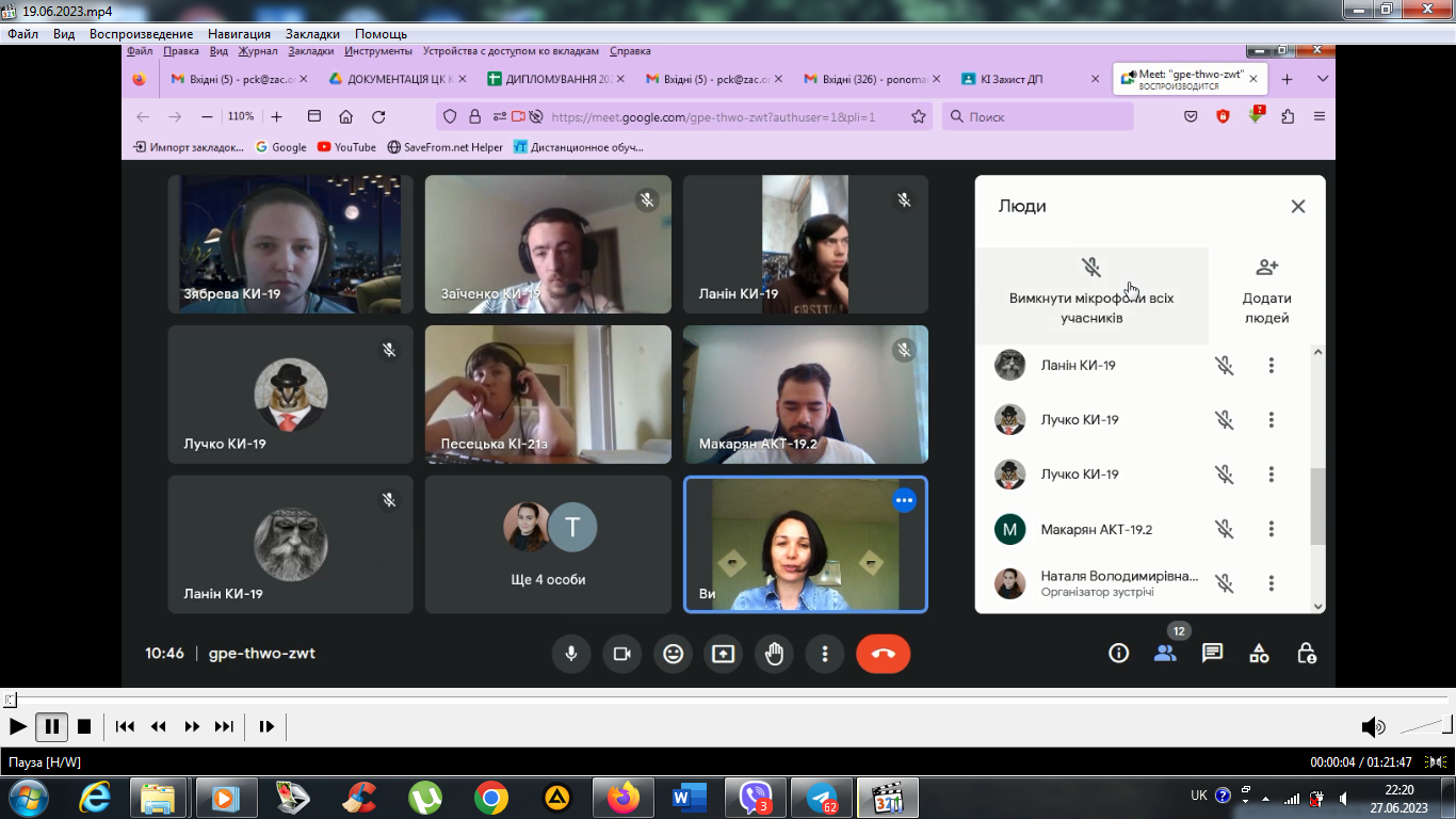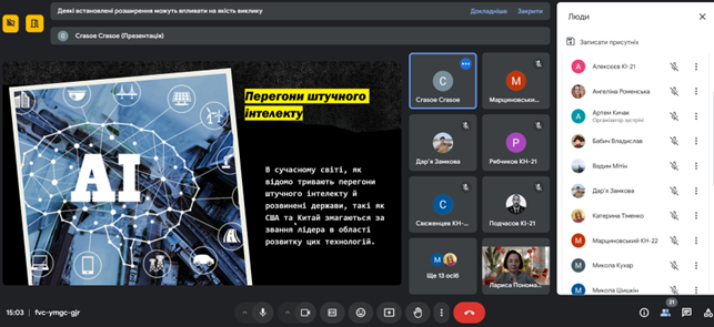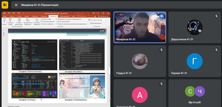 У грудні 2020 року студенти випускної групи спеціальності 123 «Комп’ютерна інженерія» захищали курсові проєкти з дисципліни «Комп`ютерні мережі» в онлайн-режимі за допомогою Google Meet.
