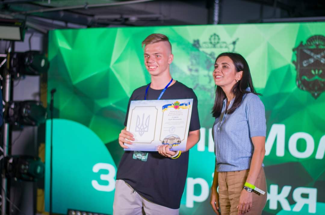 Його нагородила почесною подякою Секретарка Запорізької міської ради Регіна Харченко за активну громадську діяльність і вагомий внесок у розвиток молодіжного руху в Запоріжжі.