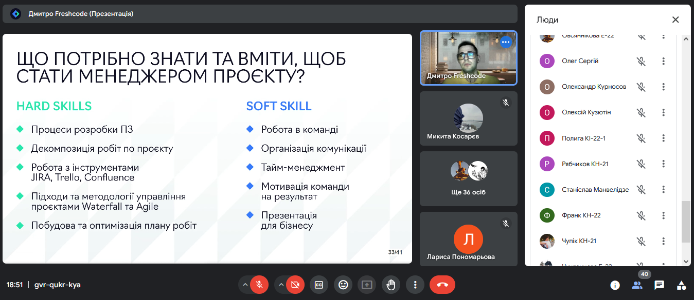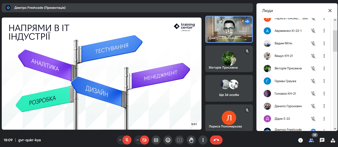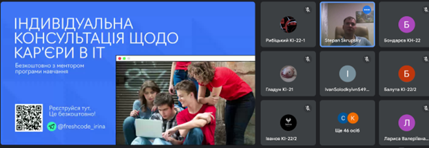 17 вересня 2024 відбулася зустріч стейкхолдера (ІТ-компанія Freshcode) із студентами 3 – 4 курсів спеціальностей 122 Комп’ютерні науки та 123 Комп’ютерна інженерія. Тематика зустрічі - Кар'єра проджект менеджера в ІТ. Були розриті такі цікаві та актуальні питання як: