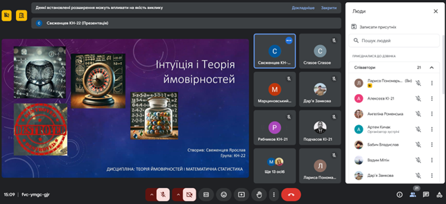 | 3 | Свеженцев Ярослав | КH 22 | Шишкін Микола Миколайович | Інтуїція і теорія ймовірностей |