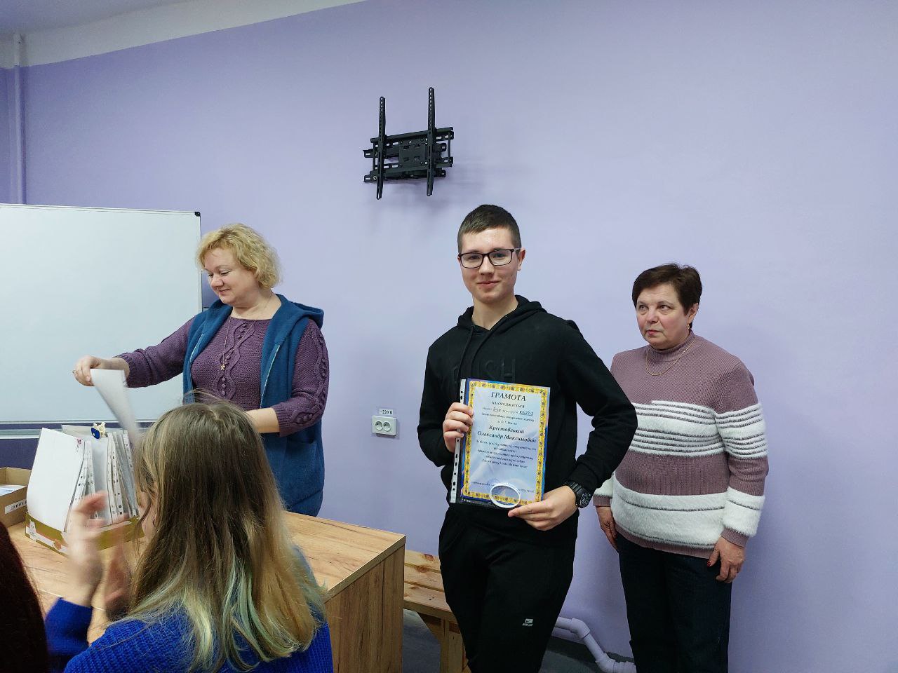 Грамоти і цінні подарунки (USb Flash накопичувач gen 3.2 на 64gb) вручали заступник директора з виховної роботи Олена МАГДА, завідувач відділення Вікторія ПРИСЯЖНА, голова профспілкової організації Тетяна ГАЛАНТЮК, голова циклової комісії комп’ютерних дисциплін Лариса ПОНОМАРЬОВА.